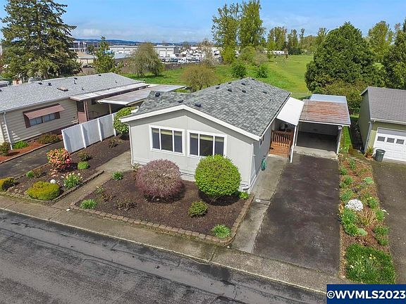 2006 Built Home 2 bed 2 bath with front covered patio and rear covered deck. Beautiful must-see move-in condition. Open floor plan with vaulted ceilings. The rear yard faces an open space park area. 1 car carport with 11 ft 5 ft storage and 15ft x 7 ft workshop with electricity. Walk-in shower in the second bedroom.