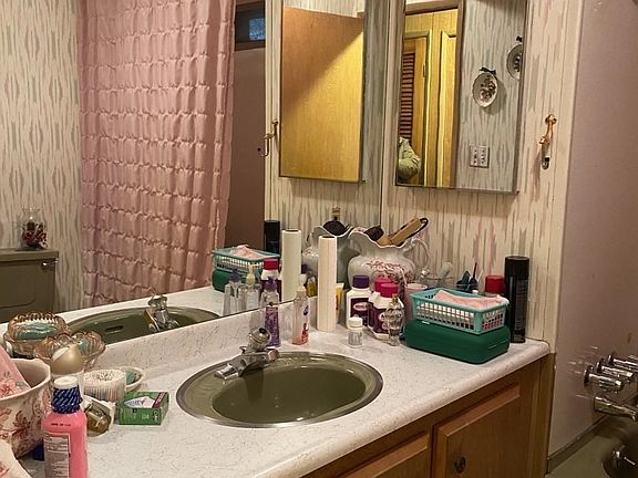 Quilter or other hobbies? This 1304SF all electric home on a corner lot in Paradise Island's 55+ park has room for all! Spacious living room w/ many windows; dining area w/ built-in hutch; kitchen w/ pass thru bar to dining; glasstop range, dishwasher, ref & w/d staying; newer ductless heating/cooling; big MBR w/ 2 walls of closets/built-ins; MBA w/ shower; sp BR w/ WIcloset across from hall BA; lg vaulted bonus room w/ fireplace & built-ins; yard w/ UGsprinklers; carport w/ shed & shop buildings!