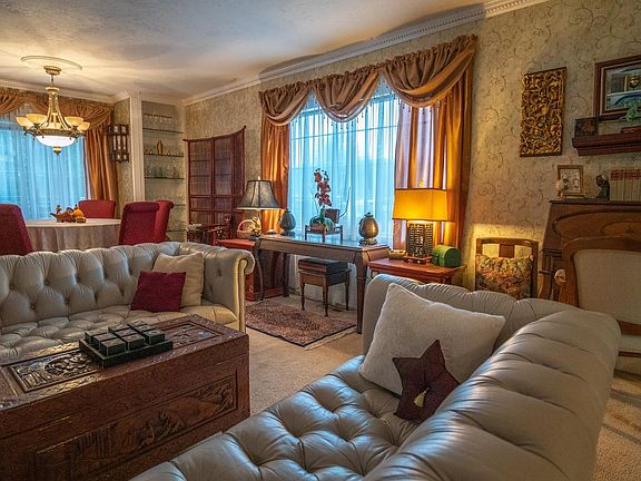Located across street from clubhouse in Paradise Island's 55+park, this well-maintained, all electric, doublewide home w/ doublewide carport & huge shed/shop has a one-of-a-kind floor plan, enclosed back deck across the creek & side yard paver patio! Cozy living room w/ fireplace, French doors into den, family room open to kitchen w/ new flooring, sink, ref & range; heat pump; vinyl windows; textured ceilings; large, landscaped lot!