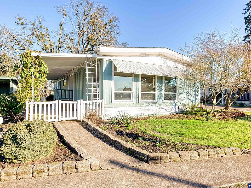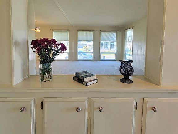 Park Rent $580!! Includes: water, sewer, irrigation water, cable, garbage, yard debris ++. You're going to love this RARE FIND 3 bed + 2 bath. HIGHLY sought after 55+ family owned park! Quiet cul-de-sac, covered deck, screened sun porch, dbl carport, extra lrg shop, creekside. Vinyl windows, 5-burner gas stove, charming built-ins, formal dining. Newer roof, furnace, Water heater. Rec hall, activities, events, clubs, spa, exercise equip, heated pool, car srvs. www.Paradiseislandpark.com.