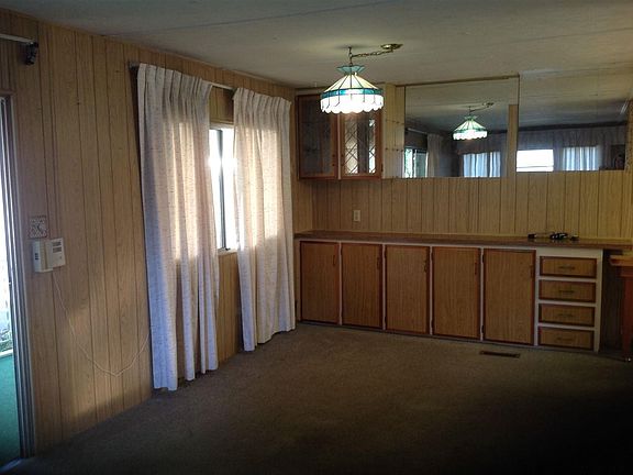 Open floor plan, all electric home w/ lots of windows, partially fenced yard & oversized single garage in Paradise Island's 55+ manufactured home park. Two sliders into home--one into living room from front covered deck, the other in spare BR. Heat pump, dining built-ins, newer tile countertops & flooring in kit w/ skylight & new water heater. All reasonable offers considered.