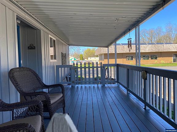 Enjoy great views of park's fountain & other amenities from your own living & dining rooms! Updates to appreciate--new paint inside & out; sheetrocked; vinyl windows; laminate floors in high traffic areas; rewired; heat pump (for heating & cooling); fenced yard, gated front deck & pet doors; UGSprinklers. Newer W/D, Ref & DW staying. MBR/BA w/ shower & WIcloset. Carport parks 2 abreast, so big shop behind!