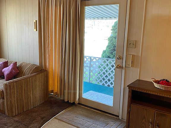 Wow! This home's waiting for you to make your own. In Paradise Island's 55+ park where low park rent ($555/mo) covers water, sewer, garbage, cable, swimming pool, clubhouse & scheduled transportation! W/D, ref, portable DW & built-in kitchen appls staying; 2 BRs/2 BAs; 1000SF; newer: heat pump, furnace, cooktop & roof; carport parking & storage shed on partially fenced, creek frontage lot w/ UGSprinklers.