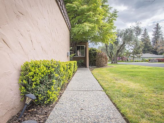 RARE FIND on the 1st fairway of the Visalia Country Club. Located in the highly desired Old Green Acres, Hyde Park neighborhood is this charming 3 bedroom 2 bath, single story PUD. Skylights brighten the vaulted T&G with beams ceiling in the living room creating a very spacious feel. The living room features Saltillo floors, a corner wood burning fireplace, and windows to a privacy garden. The updated kitchen features stainless appliances including gas range, microwave, and stylish range hood all open to the dining area and patio. The baths have been updated from original. The patio area opens to a large private lawn that looks out to the fully accessible Visalia Country Club. The club house is a short walk down the first fairway for meals, a meet up at the bar or a round of golf. The private association pool is next door and also easily accessed. The 2 car attached garage provides room for a car as well as your golf cart. Make your appointment to view today.