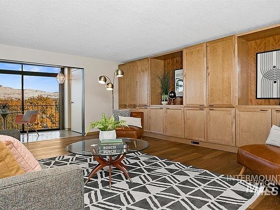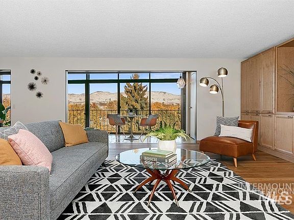Perched above Ann Morrison Park in the coveted Park View Condominiums, this top floor penthouse offers a rare opportunity to wake up every day to unobstructed panoramic views of the park, the city and the beautiful Boise Foothills! A true gem in the city, the Parkview Condos are highly sought after for their location, privacy and access to all that Boise has to offer. Featuring an expansive and open living and dining space with gorgeous hardwood floors throughout and custom built cabinetry for ample storage, primary bedroom with en suite bath, plus an incredible 210 sq ft enclosed sun porch that is the perfect place to enjoy all four seasons! Sliding doors open up to welcome in the breeze in warmer months and custom remote controlled blinds allow for complete privacy. Sun porch sq footage not included in total unit size. Assigned underground parking and attached storage unit keep vehicles and gear out of the elements and have easy elevator access to the 4th floor.