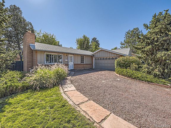 Well-maintained 3 bed | 1.5 bath ranch style home with a 2 car garage, located in the desirable Centennial Acres neighborhood. Sitting on a fantastic pie-shaped lot, this home offers two driveways, including a dedicated RV driveway on the side. The main floor features a spacious living room with a brick fireplace and original 1958 accent mirrors, wood floors, and fresh paint. The kitchen includes space for a dining table and a built-in spice rack, while the 3 bedrooms share a full bathroom. The large basement offers a second fireplace in the open family room, with the carpet already removed and ready for new flooring & beautiful piano included. There's a half bath with potential to add a shower, a generous utility/laundry room, a workshop, and additional storage under the stairs. This home provides great potential for personalization, sitting in a prime location, close to shopping, dining, and with easy access to Denver or the mountains.