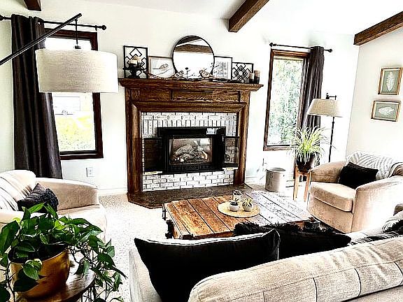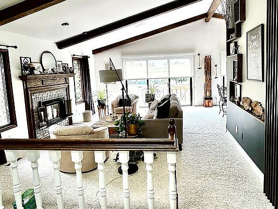 The next level has a cozy family room with a gas fireplace, an office, half bath, access to the 3 car garage and another patio door to the deck and hot tub.