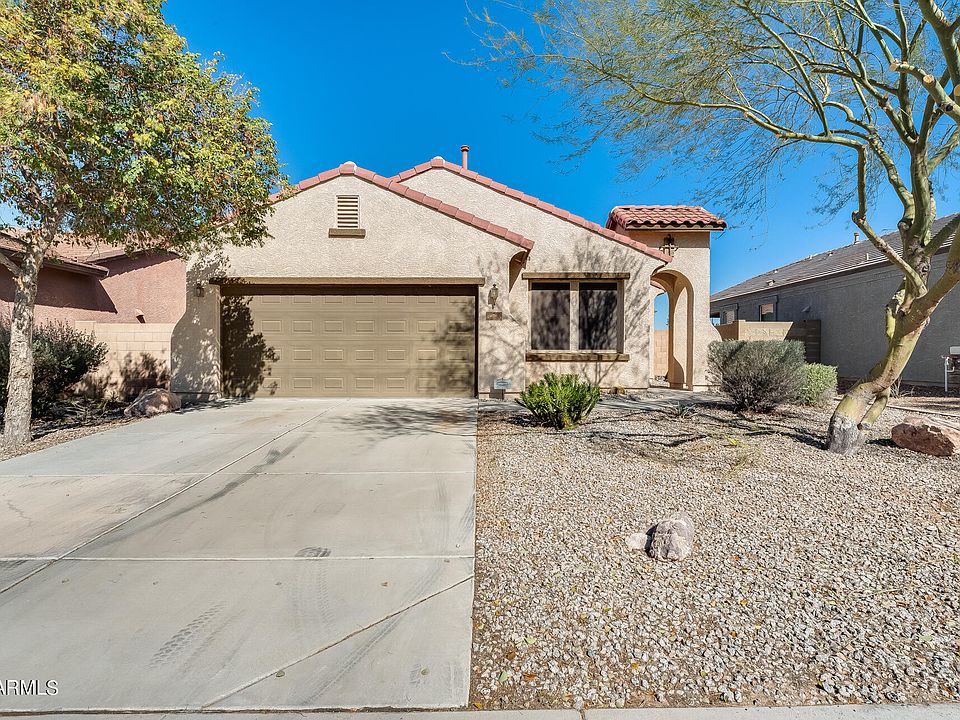 Fantastic opportunity to own a beautiful home in Tartesso! Inside, you are welcomed by a spacious open great room floor plan with vaulted ceilings. Your kitchen showcases ample cabinet space, a center island with a breakfast bar and stainless steel appliances. You'll love the low-maintenance tile flooring throughout and plush carpet in the bedrooms. The split floorplan features a sizable primary bedroom with an ensuite bathroom, separate tub and shower, dual sink vanity and a walk-in closet. The covered back patio and spacious back yard provides a great space for BBQs and outdoor activities! The playground and park are close by, and the Tartesso Community Sports Park is just 1 mile away. Don't miss your chance to own this wonderful home!