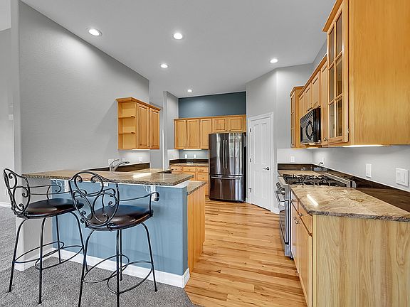 LIVE THE MOUNTAIN LIFESTYLE! This exceptional end-unit, paired home is nestled in the prestigious Ridge at Hiwan, located within the highly sought-after Lodges neighborhood. Just 10 minutes from downtown Evergreen and only 5 minutes from I-70, you'll enjoy quick access to Denver and renowned ski resorts, making it the ideal location for both urban convenience and mountain adventure. Within walking distance of scenic trails, parks, top-rated schools, shopping, and dining, this home offers the perfect combination of comfort and accessibility. Inside, you'll find expansive rooms with vaulted ceilings and high-quality natural wood finishes throughout, complemented by an open floor plan that enhances the spacious feel. The gourmet kitchen is a standout, featuring clear-Alderwood cabinetry, elegant granite countertops, a breakfast bar, and stainless steel appliances, including a new dishwasher and gas stove. A large corner pantry offers extra storage for added convenience. The walkout lower level continues the theme of spaciousness with high ceilings, large windows, and roomy areas perfect for relaxation or entertaining. The attached two-and-a-half car garage includes a 10x20 loft, providing premium storage space to meet all your needs. No smoking and no cats please. One small dog considered.