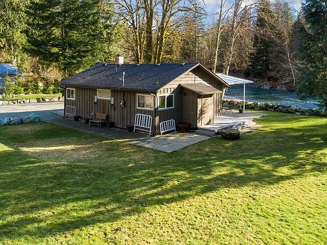 Welcome to this luxury cabin home on 3 separate, professionally surveyed, tax parcels totaling an acre with over 200? of Stillaguamish Riverfront. Great home for full-time living or a weekend getaway retreat! Floor to ceiling river rock fireplace with propane insert that heats the entire open concept living space. Updated kitchen with granite, cabinets, pantry, plenty of counter space, plus all appliances stay. Remodeled bathroom. Hallway includes nook area-great for a desk or storage. Enjoy the covered patio overlooking the river, wrap around deck with pavers, and plenty of open grassy areas to relax or entertain. Outbuildings also provide storage for tools and toys. Dog kennel with underground wire fence for dogs. Rockery lines the driveway and riverside. Wildlife abounds (deer, eagles, beavers, wild birds, and more), as do opportunities to enjoy the outdoors with nearby hiking, biking, amphitheater, and breathtaking mountain views