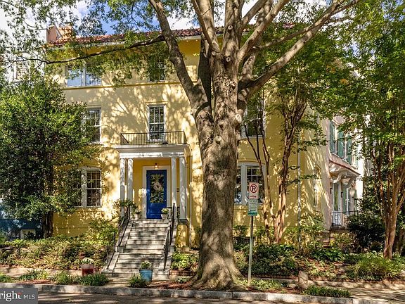 Nestled in the heart of Mt. Pleasant’s Historic District, this unique and captivating corner townhome is a true testament to Washington, D.C.'s rich architectural heritage. Built in 1913, this splendid residence seamlessly marries historical design with modern convenience. Set atop the picturesque corner of 19th and Kenyon St., this unique property offers the charm and character of historic D.C. while providing the spaciousness and updates necessary for contemporary living. Upon entry, you'll be greeted by the grandeur of high ceilings and rich hardwood floors that span throughout the entire home. Sun exposure on three sides illuminates the living space with natural light on every floor. A beautiful grand foyer beckons you into a world of timeless elegance. This remarkable home boasts three fully functional and restored wood-burning fireplaces, each adding warmth and character to their respective spaces. To the left of the foyer, an expansive dining room invites you to gather and dine by the fireplace, creating memorable experiences. To the right of the foyer, French doors open into a generously sized living room where another fireplace awaits, providing a cozy, sun-filled retreat. The living room opens into a study with custom built-ins currently being utilized as a vinyl listening room. The kitchen, remodeled in 2019, is a chef's delight. Centrally located with easy access to the main foyer and directly connected to the dining room, it features top-of-the-line appliances from renowned brands like Bosch, LG, and Filli Bertazzoni. Abundant counter space, ample cabinet storage, a walk-in pantry, and an additional closet pantry cater to all your culinary needs. Step out of the kitchen through the back door to discover a European-style courtyard oasis, ideal for grilling, hosting gatherings, or unwinding after a bustling day in the city. Ascending to the second level, you'll find a spacious primary bedroom with a fireplace, an ensuite bath and an extended walk-in closet. Across the hall, another bedroom awaits, also boasting a walk-in closet. A convenient hall powder room ensures comfort for both residents and guests. The third level beckons you with an open sitting area that overlooks the staircase, bathed in natural light courtesy of a large skylight. A full bath in the hall serves both top-level bedrooms. The third bedroom boasts a large closet while the fourth bedroom contains a walk-in closet. The lower level offers versatility with a guest suite and laundry/utility center. The guest suite presents with a kitchenette and a full bath, ensuring that family and friends feel at home. The utility area serves as a perfect storage, utility, and laundry center, housing a full-size washer and dryer.