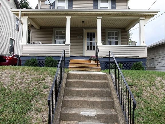 Don't miss this very clean, well-kept home! This home has been well loved over the years. Completely vinyl sided, vinyl windows and window AC units in both bedrooms. Single car garage with electric door opener, controls, electric and storage. Nice size living room with new ceiling fan w/light. Separate dining room with original hard wood floor and eat in kitchen. Butcher block counter and cupboards stay with the home. Mudroom off of Kitchen leads to back yard and garage, nice area to come in and leave wet shoes & coats. The second floor offers a large master bedroom and a very nice size second bedroom. The large bathroom features a nice surround tub/shower combo and lots of built-in cupboards and drawers plus a vanity. There has been a new exhaust fan installed. There is a second shower, laundry and plenty of storage in this clean and dry basement. This house as tons of curb appeal! Enjoy sitting out on the lovely, covered porch. Or enjoy the private back yard. Steps to the front porch