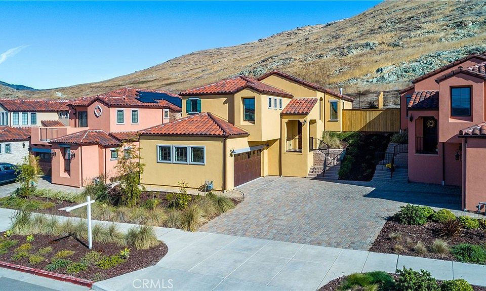 Benvenuti a Toscano! This beautiful Brachetto model recently built (2020) located in one of San Luis Obispo’s newest home developments. A thoughtfully planned layout featuring three bedrooms and three bathrooms, with the master suite conveniently located on the same level as the kitchen and living room for ease and comfort. A scenic Tuscan styled community nestled up against the South Hills Open Space offering superior craftsmanship by the well known builders Midland Pacific in this strategic and convenient location with views of surroundings hills and community birched up on the hillside. The Brachetto plan features an open floor plan/great room featuring decorator mantel/fireplace with double slider leading out to patio/BBQ area, fully fenced & landscaped backyard with added stairs on left side of house for easy access. This Modern Kitchen features upgraded Viatera Natural Lime counter tops and upgraded cabinet finish to Morel thru home. Come experience this luxury living plan with extra large Master bedroom, double vanity sinks and designer walk-in shower. This neighborhood is within easy access to shopping, restaurants, minutes from renowned beaches, wineries, Cal Poly University and much more that the Central Coast has to offer. This low impact home combines the latest in water and energy conservation technologies along with an OWNED Solar System. Dont miss your opportunity to live in this beautiful community with direct access to South Hills walking trails!!