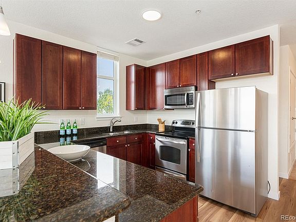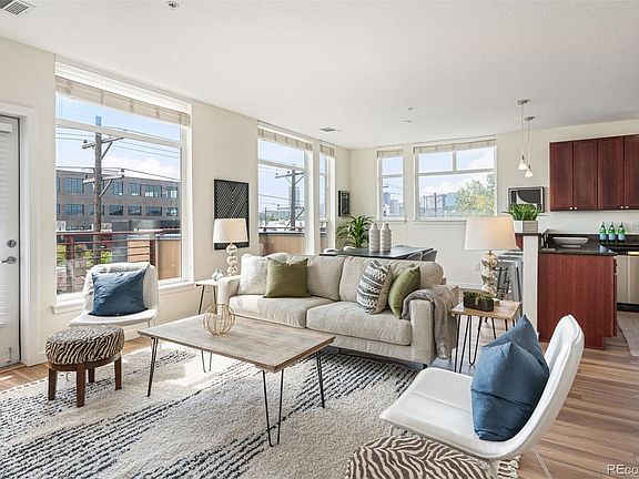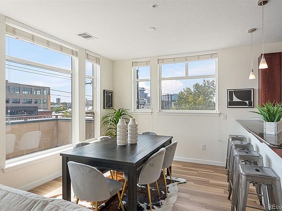 Phenomenal location, close to coffee shops, breweries, restaurants and shopping, with mountain and downtown views from your loft and balcony. The natural light throughout is a natural mood booster. You’ll love the open floor plan with cherry kitchen featuring granite countertops, stainless appliances and breakfast bar, plus dining room, and great room. Primary bedroom is spacious with five-piece bath and the second bedroom has opaque double glass doors, plus there’s a second ¾ bath, laundry, covered garage parking space, and storage space. Watch the fireworks from Coors Field or grab public transportation to anywhere. This penthouse loft has everything you were hoping to find in Rino, just unpack and start enjoying that Colorado lifestyle.