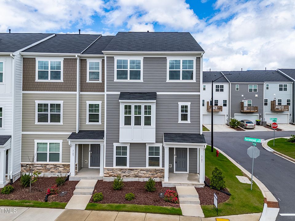 Beautifully designed home in one of Durham's most sought-after neighborhoods. End Unit that lives like a single family with open floor plan! Upgraded gray cabinet, quartz countertops, stainless steel appliances, subway tile backsplash and large island in the kitchen. Upgraded flooring including oak stairs from 1st to 2nd floor. Bedroom and full bath on 1st floor. Master suit featuring en-suit bathroom and a walk-in closet. Perfectly located for convenience and comfort. Easy access to grocery, shopping center and dinning. Community amenities include green space and a playground. With easy access to RTP, airport, and Brier creek shopping, you won't want to miss this opportunity! Owner pays HOA. Tenant is responsible for water, gas, electric. No pets allowed. Available for rent or purchase.