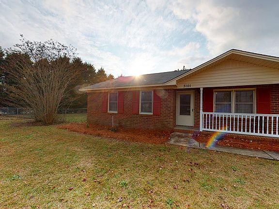 GRANITE and appliances are brand new along with new paint and new flooring. Brick home sitting on .62 of an acre with large bedrooms and one and a half baths with 1041 square feet. Great room has new vinyl plank flooring and in the hallway. Kitchen has new granite, ceramic tile flooring and new black stove, refrigerator and built in microwave. Laundry room with cabinets. Master bedroom with a half bath and a large walk in closet. Front porch, rear patio, large fenced back yard with double gate, outside storage room and a detached storage room. Completed with a .62 of an acre corner lot with semi privacy with Leland Cyprus trees along the corner side.