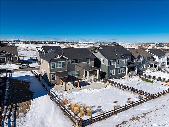 Welcome to this stunning 2022 -built home, perfectly situated on a premium lot backing to open space on two sides. Thoughtfully designed with high-end upgrades and unmatched attention to detail, this property offers a seamless blend of modern comfort and natural beauty. The backyard features a spacious patio and gazebo, ideal for enjoying Colorado’s sunny days and starry nights. Inside, the open floor plan is perfect for everyday living and entertaining. The gourmet kitchen features quartz countertops, a large island, and a spacious walk-in pantry- all designed for effortless entertaining and inspired cooking. The adjoining great room with a gas fireplace and oversized windows, flooding the space with natural light and providing serene views of the outdoors.