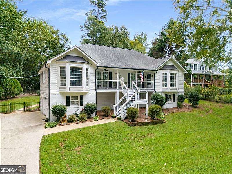 This lovely home features four bedrooms with two and a half baths. Spacious family room with brick fireplace. Open kitchen with tile floors, stainless steel appliances, granite counters, an island, built-in shelves, and an under-counter filtration system. Three bedrooms on the main level, master bedroom with a tray ceiling, and a walk-in closet. Master bath with double vanities, soaking tub, separate shower, and water closet. Fresh paint throughout, tankless water heater, copper pipes, and security system. Finished basement with additional living room, fourth bedroom, and powder room. Huge two-car side entry garage with extra storage and work area. Beautiful covered rocking chair front porch. Rear deck overlooks park-like rear yard with patio, and separate storage shed and firepit. Stone-paved walkway to access the driveway. Extra parking pad for the third car.