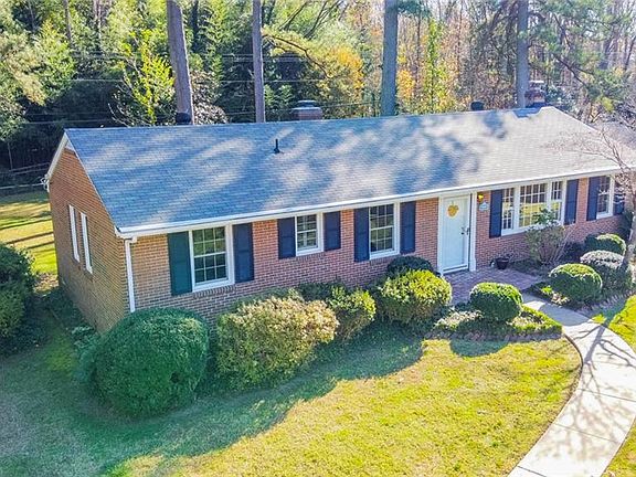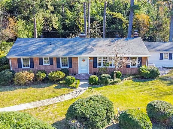 "AMAZING" DESCRIBES THIS ALL BRICK RANCH HOME WITH WITH SECLUDED REAR YARD SETTING! Set on a beautiful private lot w mature landscaping, this home offers a delightful aspect of STRATFORD HILLS. Formal Living & Dining Rooms w triple window, moldings, chandelier & NEWLY REFINISHED ORIGINAL HARDWOOD FLOORS; RENOVATED EAT-IN KITCHEN w recessed & pendant lighting, 42" Maple cabinets & slider drawers, terracotta style ceramic tile floors & brick wood burning fireplace; Sunroom has built-ins, crown molding, CF and sliding glass doors offering views & access to PRIVATE back yard; Three generous bedrooms all w hardwood floors, ceiling fans & large closets; Main Bedroom has its own private half bath w plantation shutters; Hall bath also w shutters, tub & shower; Laundry is convenient w access to rear yard/driveway, carport & extra storage; Outside the paved drive offers double width parking plus Carport with storage; Beautifully landscaped w English Boxwoods, Rhododendron, Camelia's, Crape Myrtle, Fig & other Fruit Trees & much much more. Formerly owned by a famous Virginia horticulturalist, this well maintained home and setting are not to be missed!