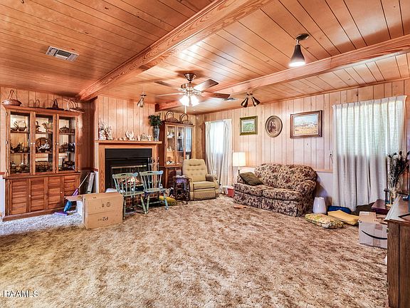 - Beamed Ceilings, Bookcases, Built-in Features, Crown Molding, Kitchen Island, Walk-in Pantry, Formica Counters
