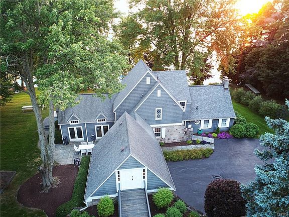 Take in the spectacular panoramic lake views and gorgeous east side sunsets at this beautiful year round 1.88 acre lakefront property featuring 202 feet of private waterfront. Enjoy lakeside living from the multi-tiered decks and patios that span the back of the home along with sweeping views from the kitchen and family rooms that open up to the deck. The great room with cathedral ceiling features a wood burning stone fireplace and more stunning views of the lake. Three bedrooms and a full bath make up the second floor. The cozy first floor den could also be used as a 4th bedroom. A long private driveway with space for extra parking and an attached 2 car garage makes plenty of room for guests.