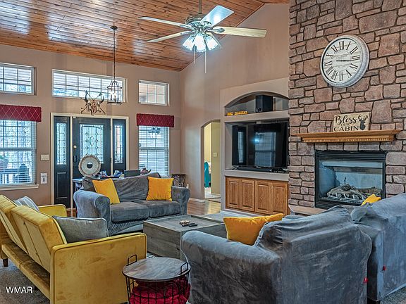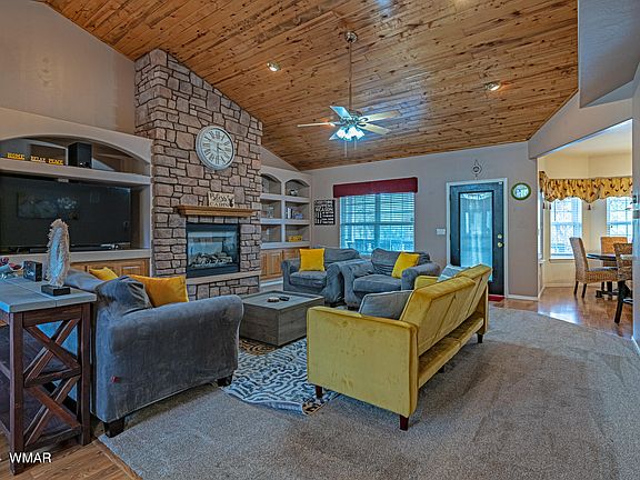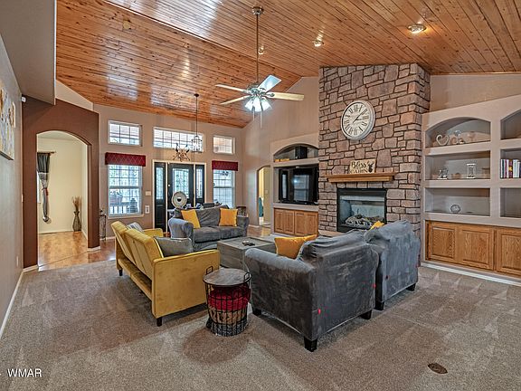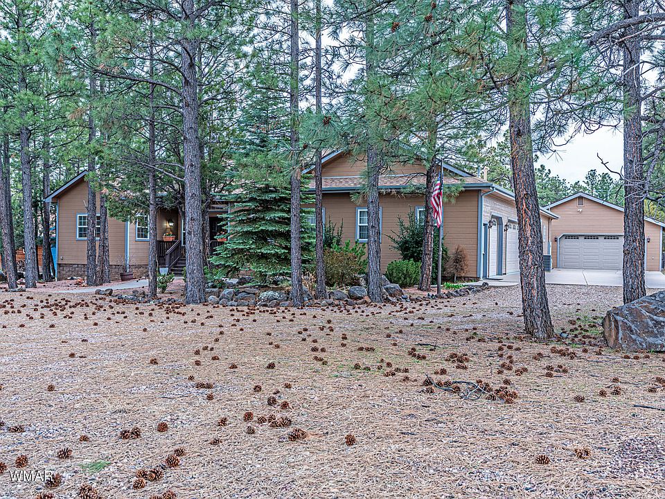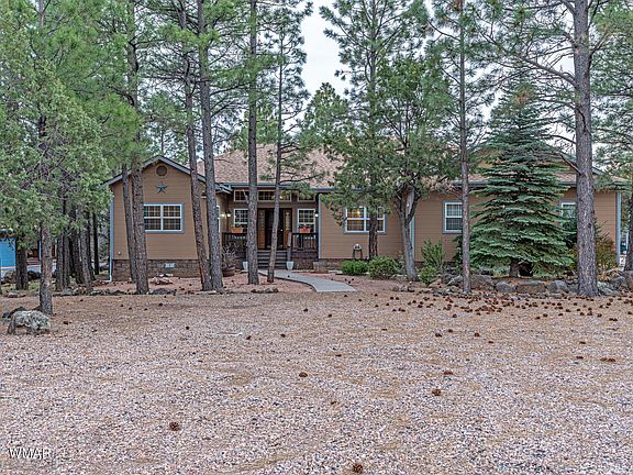 One of the most unique and coveted properties in Show Low can be yours. The interior brings many benefits with 14 ft tongue and groove ceilings, a gourmet kitchen, great room for everyone to gather and a primary suite with a fireplace to relax and unwind. This home features a 3 car garage for your cars or toys with its own 1/2 bath PLUS a separate 900 sqft garage/workshop with its own full length covered patio. Enjoy sitting on the trex decks under the many tall pines on this property. The beautiful landscaping, ample parking and full RV hookup is just what you're looking for. Close to hiking trails, and a 2 minute drive to Show Low Lake. This home will be in the end of your search.