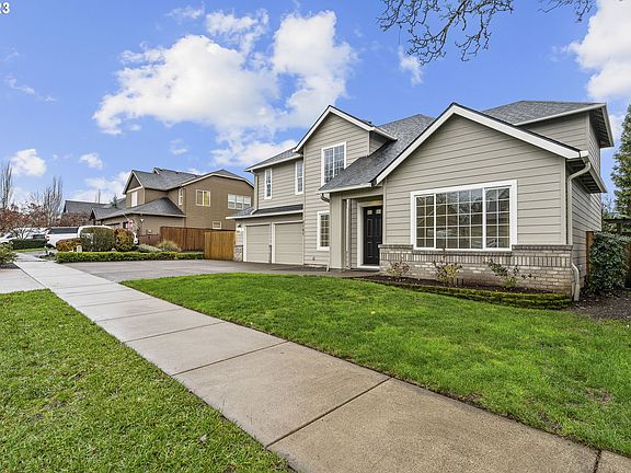 Check out this stunning home located in Whistler's Ridge, one of Newberg's sought after neighborhoods just steps away from Tom Gail Park. The entire home boasts a beautiful & extensive renovation! You enter the home to high vaulted ceilings with beautiful hickory hardwood flooring throughout the main. The first floor includes a formal dining and living room, family room, which opens to the kitchen and yard, a half bath and laundry room. The kitchen features new quartz countertops with freshly painted wood cabinets including new hardware, a new undermount sink, new stainless steel appliances, an eat bar and pantry. Upstairs includes four bedrooms and two full bathrooms. The primary suite includes a slider & balcony overlooking the manicured backyard, heated tile flooring in the bathroom and a walk in closet. The outdoor amenities feature a spacious fenced yard with a fire pit & raised beds, extra driveway parking and includes RV or boat parking behind the fence. NEW 2023 UPGRADES: Landscaping; roof; exterior paint; newer Leafgaurd gutters throughout (unknown installation date on gutters); balcony decking; interior paint including millwork & cabinets; hardware; tile backsplashes; quartz kitchen countertop and bathroom vanities; all toilets and sinks; shower door; stainless steel appliances, all light fixtures; carpet throughout, hickory hardwood flooring in the living and dining room; refinished hickory hardwood throughout rest of main level; luxury vinyl plank in laundry and upper bathroom. No HOA. Come check out this professionally cleaned, move-in ready beauty!