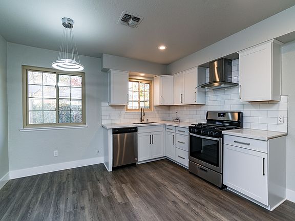 Welcome to this beautiful home located in Northwest Selma, close to schools, parks and dining. Enjoy this fully remodeled home, including plank style laminate floor, new fixtures and hardware, fresh paint, and new carpet. As you enter the home, you will notice the living room includes a large window promoting natural light and a modern ceiling fan. Enter the kitchen to enjoy stainless steel appliances (oven/stove, dishwasher, and range hood), upgraded cabinetry, and quartz countertops. The master bedroom includes a ceiling fan and an attached bathroom with a tiled shower and rainfall shower head for ultimate relaxation. The backyard is perfect for entertaining, including a covered patio and large back lawn. Home also features an attached two car garage. Tenant responsible for all utilities Minimum of one year lease required Non destructive pets are allowed.