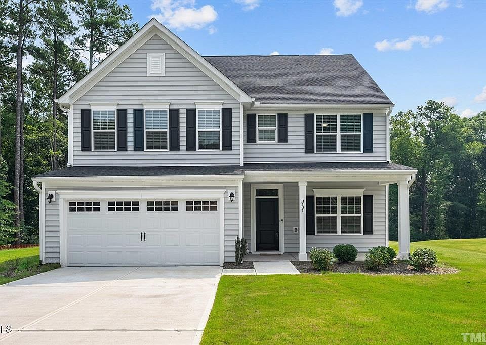 JUST LIKE NEW!! 2022 built GORGEOUS home on a HUGE 0.47 acres lot!! Home features open floor plan ,1st floor study, 1st floor guest bedroom, covered porch, patio, SS appliances in kitchen ,3 spacious bedrooms on the second floor, oversized loft , laundry room with sink & cabinets , fan in every bedroom , oak stairs with metal balusters , smart thermostat , tankless water heater , Master bedroom with tray ceilings , dual sink vanity, 2 walk in closets , wooded view , tons of green yard space and MUCH MORE !! Community is conveniently located to RTP, Duke, downtown Durham, and futureApple campus.