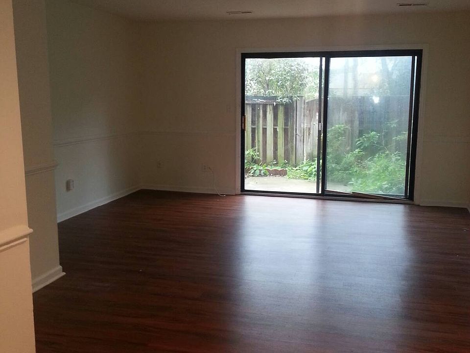 Two bedroom townhome at the Forest. Rent includes water and trash. Unit features plank flooring throughout first floor and carpet upstairs. Small fenced-in patio. Washer/ dryer hook-ups. UNIT NOT AVAILABLE Until April 5th. Community Association has separate pet restrictions.