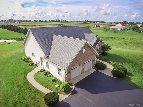 Immaculate Custom Built Home Featuring Brick/Stone/Vinyl Exterior. Country 5 Ac. Setting On Knoll Overlooking Stream & Bridge Crossing Over To Grassy Pasture & Pines Outlining Back Property. Entry To This Beautiful Home Stunning Hardwood Floors Leading To Huge Great Room W/ Natural Light W/ Upper Skylights In Cathedral Ceilings Above. Formal Dining Area W/ Tray Ceilings W/ Post Columns. Outstanding Kitchen w/42" Maple Cabinets, Food Pantry, Eat At Bar, & All Stainless Steel Appliances. An Absolutely Gorgeous View From Breakfast Room, Rolling Hills & Stream In Back Acreage. Ventless Gas Fireplace Serving Both Breakfast & Great Room Area. Spacious Luxurious Master Suite, Over Sized Walkin Closet, Full Bath W/ Whirlpool Tub, Separate Shower, & Double Bowl Vanity. Laundry/Mud Room W/ Laundry Sink, Cabinets Above & Below. Rec & Family Area In Basement, & Semi Finished Rooms For Other. Plumb For 3rd Bath. Paved Driveway W/ Turn Around Area & Plenty Parking. Wonderful Property.