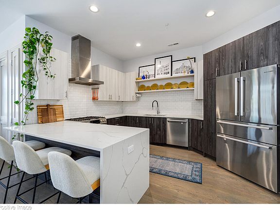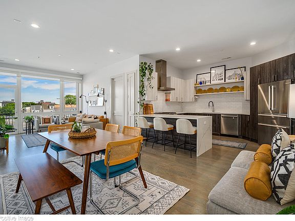 Experience the ultimate in modern living with this stunning condo in Avondale, built in 2020 and offering better-than-new construction. This bright and beautiful unit boasts 3 bedrooms and 2 full baths. The kitchen features custom Euro cabinets and millwork, waterfall quartz countertops, Bosch appliances, under-cabinet lighting, and exhaust venting to the outside. The main bath offers a spacious steam shower with a handheld and overhead rain shower, heated floors, and a double bowl sink. The unit includes hardwood floors throughout, 11' ceilings, 8' solid interior doors, floor-to-ceiling windows, a large balcony, in-unit washer and dryer, professionally organized closets, wired for sound, and a Nest thermostat. The building provides indoor heated garage parking, an elevator, a wonderful common roof deck with city views, a package delivery room, and a loading dock. Located in a prime spot, this condo is just steps from the Milwaukee 56 bus and within walking distance to the Blue Line.