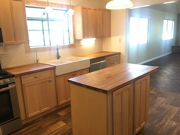 You don't want to miss this warm & inviting home; with it's circular driveway, mature Pine Trees, access to the backyard from both sides for RV parking or additional parking, situated on just under a 1/2 acre. This home features 2129 sq. ft., 4 bedrooms, 2 baths .Do you like to entertain or need space for your family? The great/family room, w/it's surround sound has a ton of space for doing just that, cozy up to the wood burning wood stove for those cold winter nights. The kitchen has maple cabinets, butcher block counter-tops, porcelain farmhouse sink, brand new stainless steel appliances, under mount lighting & the list goes on. The over-sized garage, w/it's beautiful french