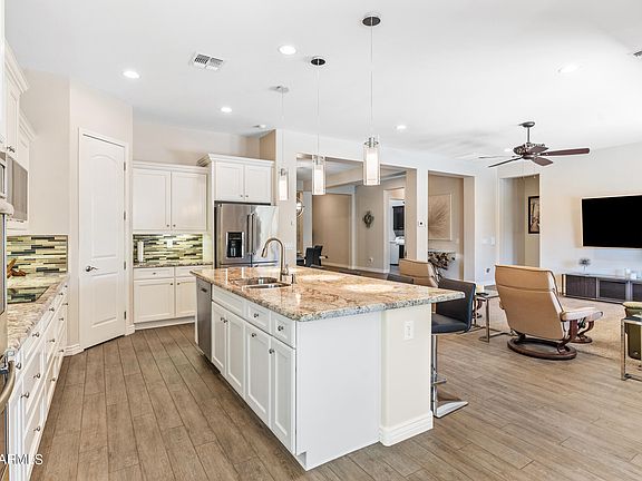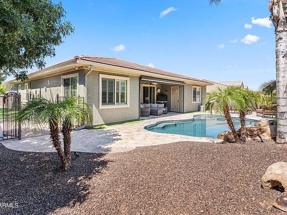 One of the best lots in Lehi Crossing, never before on the market, is waiting for you to make it your new home! Nearly 2500 SF of high end living combined with 4 car garage, RV gate, Pool, Built in fireplace and bbq combine on this corner lot to bring you best North Mesa has to offer. Open floorplan with 3 bedrooms, 3 bathrooms, an office, a den a formal dining and a great room. White kitchen cabinets, high end SS appliances, granite countertops, designer lighting, split master w/ walk in shower, tub with designer surrounds, two sinks a great walk-in closet with shelving system. The large backyard has a sparkling pool with water fall, beautiful brick fireplace, built in BBQ, and a side yard with room for all your low profile toys. Pride of ownership is an understatement!