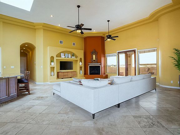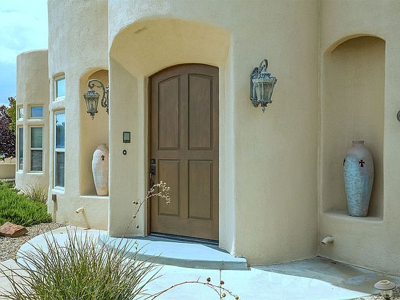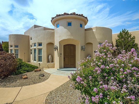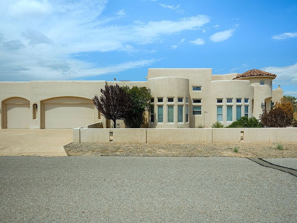 Single Story Beauty on Completely Landscaped .5 Acre Lot, Sitting Wonderfully on the Corner of Cul de Sac. Notice the Big Sandia Mtn Views along w 3 Car Garage, Legit RV Hookups and Pad, Gated Back Yard (Side Yard) Access and 2 Covered Patio Areas ... One w Built in Kiva Fireplace. Enter Foyer and Discover Exceptional Open Floorplan Great for Entertaining and Complete w Family Dining Rm, Office, High Ceilings and Tiled Throughout. Kitchen has Breakfast Nook, Granite Counters, Cabinets w Pullouts, All Stainless Apps: Fridge, 5 Burner Gas Cooktop, Convection Microwave and Oven. Primary Suite has Fireplace and Views of Sandias. Primary Bath Has Jetted Tub, Snail Shower, Raised Dbl Sink Vanity and 9x11 Walkin Closet. Laundry Rm Has Sink, Counters and Cabinetry. Schedule Private Showing Today.