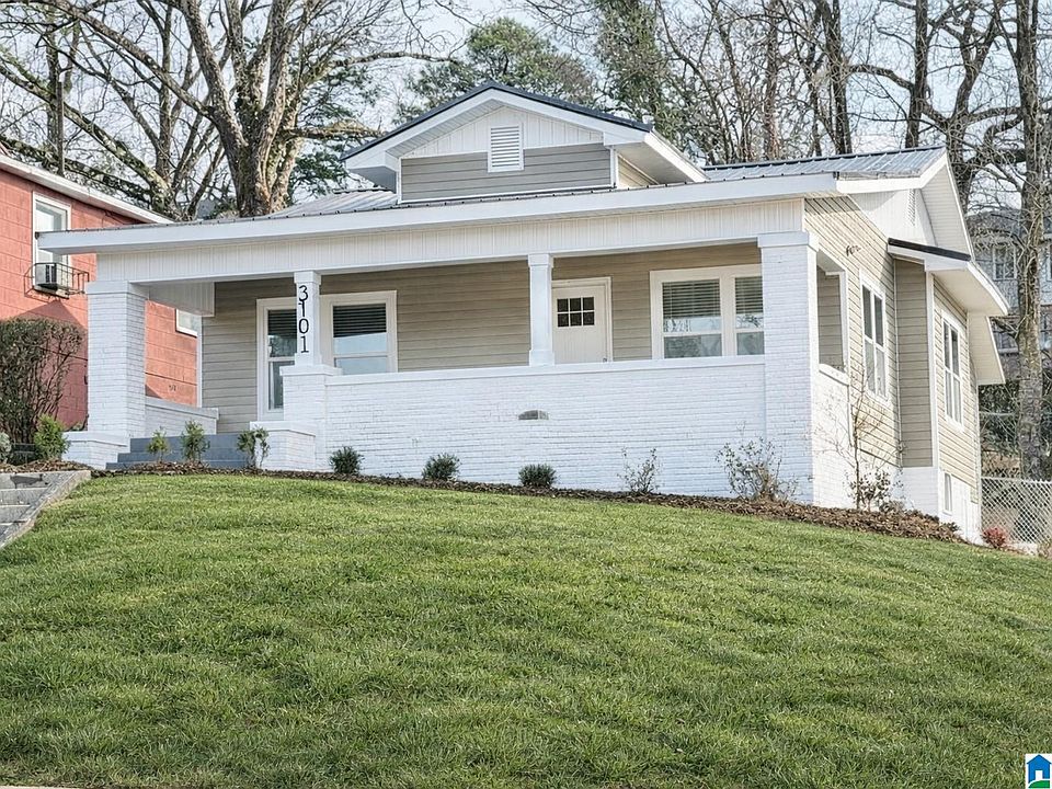 Welcome to this charming Craftsman bungalow, beautifully remodeled & set on a huge corner lot w/a spacious backyard & main-level mudroom/laundry entry. Perched atop a hill, this home features many new custom upgrades. From inviting front porch, step into LARGE OPEN living, dining, & kitchen space w/ all-new flooring throughout. All-new electrical, plumbing, HVAC, roof, water heater, interior/exterior paint, siding, soffits & windows! Custom kitchen features stainless appliances (see AI placeholders), granite countertops & LARGE ISLAND w/commercial style stainless sink & breakfast bar. Incredible natural light fills the home! Primary bedroom showcases standout custom green wall, plus a gorgeous bath w/a LARGE tiled shower, glass door, upgraded double vanity, & walk-in closet. Two additional oversized bedrooms w/great closets too! Centrally located full bath ALL NEW w/custom tile & upgraded vanity. Rear mudroom/laundry adds parking convenience. Large backyard & basement garage included!