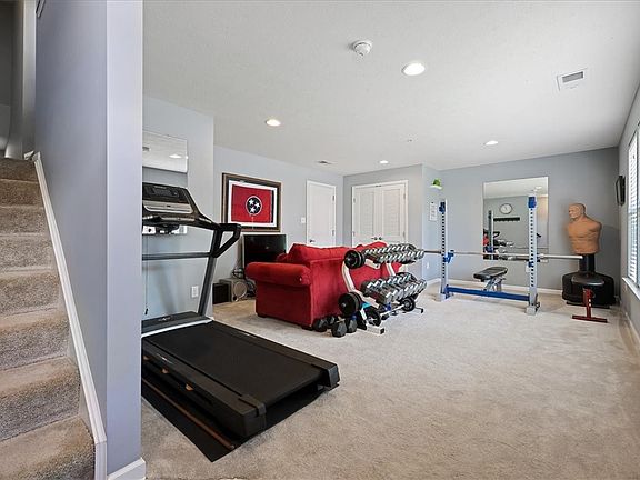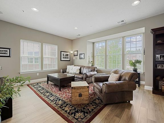 Beautiful brick end unit on one of the best lots in the neighborhood-PRIVATE backyard w/ views of the community! This home features the coveted 4' extension adding living space in the kitchen, living room, owner's suite& lower level bonus room. Freshly painted lower level & heavy traffic areas. Updated LVP flooring in the living room & dining room while the kitchen features hardwood. The large kitchen island is perfect for entertaining & leads out to the deck for enjoying the evening sunset. The desirable open concept layout flows between the living space, dining room & kitchen. Upstairs is the Master suite is on the backside of the home & features a beautiful tray ceiling & plenty of natural light, in addition to a must-have walk-in closet & en-suite bath equipped with a dual vanity, soaking tub & walk-in shower. Washer & dryer is conveniently located upstairs. Two additional bedrooms & a full size bathroom with a shower/tub combo. GORGEOUS community pool, fitness center, movie room.