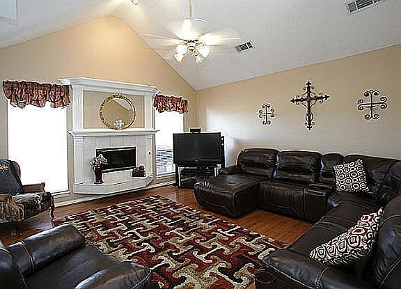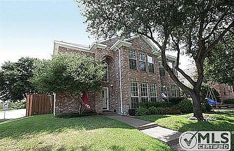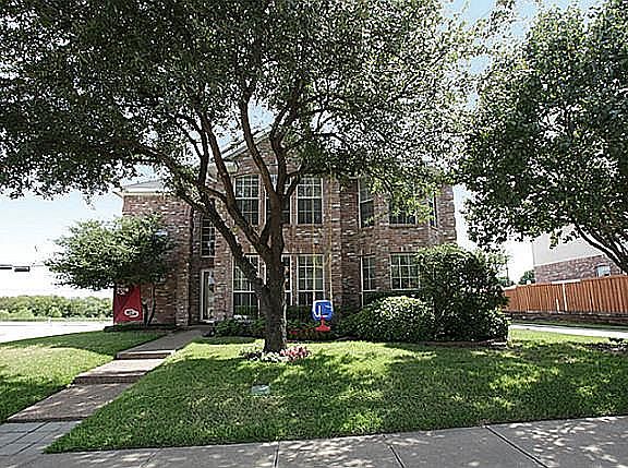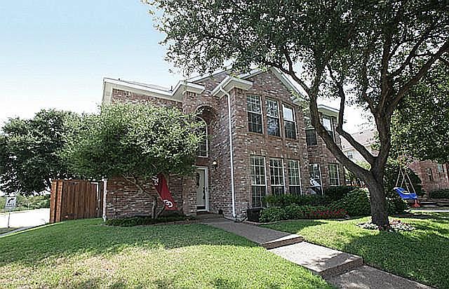 New wood flooring through first floor, new master frameless shower and bath. Fabulous 4 bedroom layout with master down, 2nd living or formal dining, 3 bedrooms and loft/living area upstairs. Great kitchen with 42 cabinets, accent lighting & open to family room. Updated guest half bath and new garage door & hardware. Convenient location with easy access to George Bush turnpike and across from greenbelt with walking and biking trails and a short 5 min. walk to park. Corner lot and alley way on other side means no immediate neighbors.