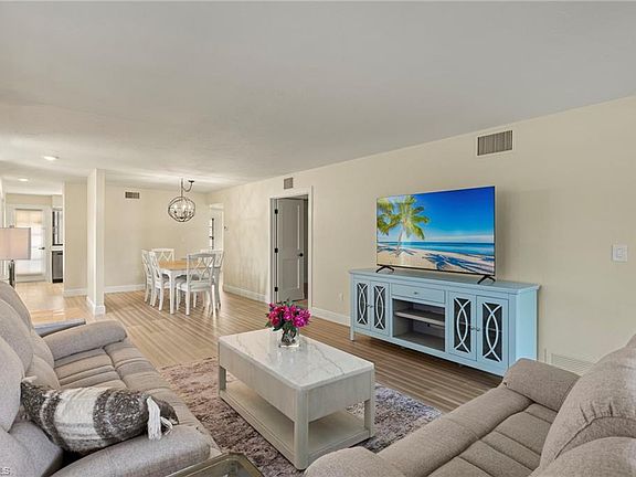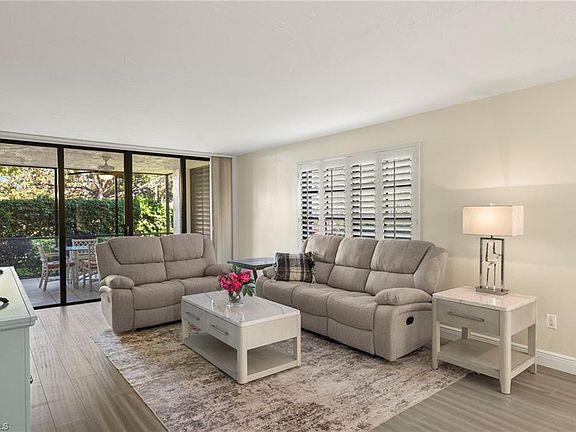 Come tour this just-listed, 1803 total sq ft sq first-floor home in coveted Moorings neighborhood! Prepare to be impressed with what luxury resort living can be! This recently updated luxury home features 2Bed+Office/Den, 2 full baths, 1 car carport, 2 lanai/patios. Recently upgraded white kitchen has beautiful quartz countertops, new stainless appliances. Dining room and open living room are designed for entertainment and family gatherings. Living room seamlessly connects to the expansive lanai. Large owner's suite has massive walk-in closet. Updated primary bathroom features large glass step-in shower. Spacious 2nd bedroom has good closet space. Den/office is perfect for work from home, or could be a queen size 3rd bedroom. Community pool and grill area is right by the house, just a few steps from lanai. Coveted neighborhood of Moorings provides a luxury maintenance free lifestyle in a beautiful lakefront setting, a few minutes driving to sandy gulf shore beaches and 5th Ave, A+ rated schools, great shopping and dining, the best of Naples at your fingertips. Strictly no pets. Fully furnished. Rent includes cable and Internet, water, trash removal. Tenants responsible for only electrical bill. Prime Naples location, minutes to 5th Ave, Venetian Village, Waterside Shops, Mercato, beaches!