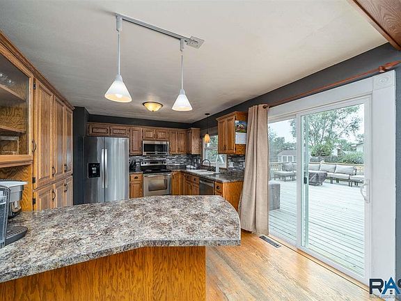 Charming, Thoroughly Updated & Upgraded Home On Nearly ¼ Acre Lot In Coveted Central Sioux Falls Neighborhood! Delightful, upgraded kitchen w/ an abundance of cabs, tons of counter space, tile backsplash, stainless steel appliances, pantry system, convenient breakfast bar & lovely hardwood floors that extend to the spacious dining area w/ sliders to the enorm deck w/privacy wall. Inviting living room w/ lrg picture window allowing for an abundance of natural light & rock encased gas FP. The sprawling upper level hosts 3 sizeable beds, incl. the master suite w/ private bath. The LL features a great family room w/ cozy wood burning FP & a bonus room perfect for an office or playroom. Oversized garage w/ epoxy flooring plus add'l parking pad & sprawling, fully fenced & lushly landscaped yard w/storage shed & yard playset. New exterior paint, carpet & interior paint throughout & recently updated furnace & water heater. Meticulously cared for & perfectly located!