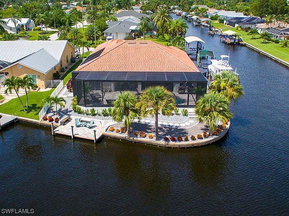 Sophisticated luxury meets Island time in this 3,148 sqft 5 Bed/5 bath, single level DIRECT GULF ACCESS tropical oasis! NO BRIDGES, NO LOCK, AND IT ONLY TAKES 2 MINUTES TO GET TO THE RIVER *Methodically updated/renovated and then meticulously maintained*. This homeowner thought about it all... Everything you could imagine wanting in your Florida home is here!!! Including but certainly not limited to; New renovated kitchen and bathrooms accompanying the FIVE BEDROOMS! NO STAIRS! NEW AC! *TWO BOAT LIFTS* one at 20,000 lb, the other is 7,000 lbs. New custom fish cleaning station with canopy, New dock plumbing, water to both boat lifts as well as the fish cleaning station, Restored seawall, sealed all seams, and installed pressure equalizing valves, New electrical service to docks, New dock lighting, New Exterior and interior lighting, New oversized brick paver driveway and sidewalks, new brick paver pool deck, pool was just resurfaced with all new pool equipment installed, new panoramic screen enclosure highlighting your expansive INTERSECTING CANAL VIEW with multi million dollar homes and picture perfect sunrises as an idyllic backdrop while you sip your morning coffee!