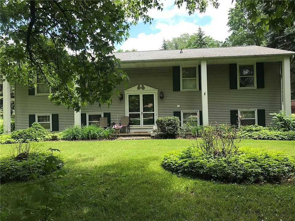 Spacious one owner home on almost 3/4 acre corner lot. 4 zone hot water heat, new premium laminate flooring in living room, dining room, kitchen & hallway, new double front doors & slider patio door, roof 6 years, AC 2 years old. Lower level perfect for in-law apartment. Includes movable island in kitchen. New garage door. Front pillars wrapped with aluminum. Appointments start at open house Sunday, 6/13/21 1-3pm.