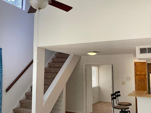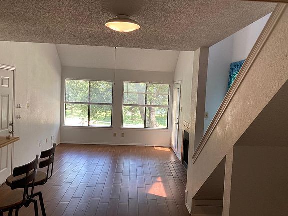 Modern-style loft, two-bedroom, two full bath condo/apartment for rent at the University Park Condominium complex (available for move-in November 1, 2025 and for viewing starting October 17). The apartment features a modern, angular design, with a large loft bedroom upstairs and a smaller downstairs bedroom; both with full baths. The complex is less than a half mile from the museum district as well as the 7th Street entertainment area and only 2 miles from downtown (clearly, one of Fort Worth's premier locations). The living area has new tile floors, the sleeping areas and stairs both have recently installed carpeting. Although the condo has worked well for roommates in the past, it is excellent for couples or for a single tenant looking for a spacious, affordable apartment with the downstairs bedroom which can also serve as an office (the monthly cost for this unit is about the same as an efficiency or one-bedroom apartment in the complex) . The unit is on the second and third floors and has balconies on both floors (the second-floor balcony has a large shade tree, and the third-floor balcony has a sweeping panoramic view of downtown). Washer and dryer are included in the condo; the kitchen has all the contemporary amenities including a refrigerator with ice maker, dishwasher, microwave, stove/oven, garbage disposal, and plenty of cabinets. There is a wood-burning fireplace downstairs. The condo is unfurnished, except for two barstools at kitchen counter and a wardrobe in the upstairs bedroom. All utilities except electricity and internet are included. The quiet complex is in a secure, gated community with video monitoring and coded security entry gates. There is a beautiful pool area with a hot tub/Jacuzzi and communal propane barbecue grills. Remote control for the entry gate to the complex and a key-fob for the pool area is provided. Only applicants with full application including credit score, income and background check will be considered. Sorry, no pets or smokers please. Thank you.