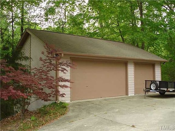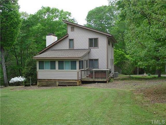 Private contemporary backs up to state park land on Falls Lake. Walk to the shoreline. Home in impecable condition with new windows, excellent paint job, all appliances and hot tub. Detached 3 car garage and storage building. Truly a fun home-miss this and you will regret it! HVAC is heat pump with gas back up. Nearly new hot tub.
