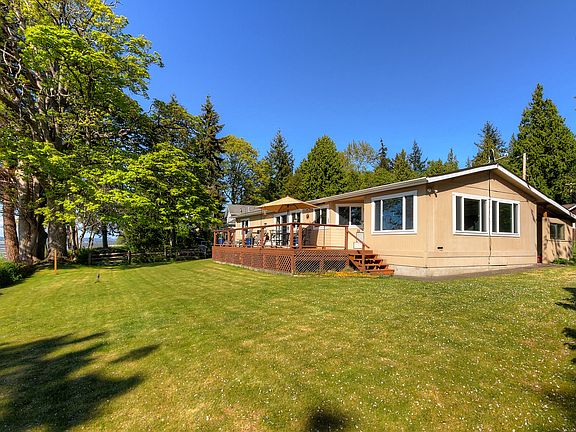 Waterfront estate on 120 feet of west facing beach. Salish Sea & island views as far as the eye can see. The fully furnished main home was recently renovated with a luxury Pottery Barn style decor featuring hardwood flooring, granite counters, & custom tile work. Large windows to bask in the breathtaking views. Huge deck overlooking the tides. Nice grassy area for lawn games. Easy access to the water via a meandering stair case. Guest cottage has 1 bdrm & a garage. $499,000.