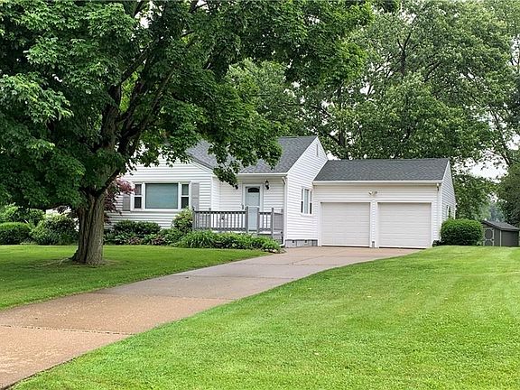 Welcome to your beautiful, well cared for, updated Ranch in Lake Schools on almost a 1/2 acre with gorgeous landscaping and fabulous curb appeal. Living Room features a corner, stone fireplace & original hardwood floors that continue into the dining room and also under the carpet in hall & both main floor bedrooms. Recently renovated to include 2 larger bedrooms eliminating a small 3rd to expand the kitchen and make room for an eat-in area with an open concept. Newer sliding glass door leads out to the newly added composite decking, overlooking a quiet and peaceful backyard. Basement features a finished area with an extra large bedroom with a second fireplace, 2 large closets for plenty of storage and a private office. Recent updates include some new windows, siding, shed, deck, finished basement, glass block windows in basement, city water, city sewer, updated kitchen and flooring, front door and garage doors. Don't miss the opportunity to own this home. Home Warranty provided by Seller.