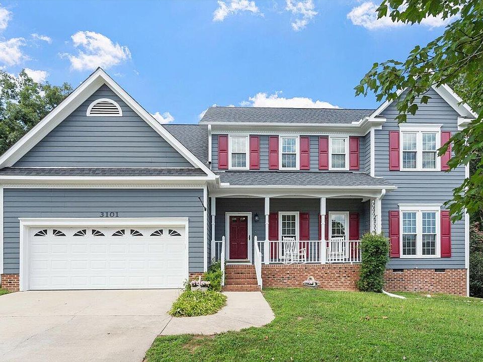 This Lovingly maintained 2-story home is located in an established and yet quiet Heron Park neighborhood. This 5-bedrooms home includes a First Floor Master Bedroom and Hardwood Floors flow throughout the first floor. Family Room has dramatic and soaring ceilings, a fireplace with a masonry hearth, gas logs and a decorative mantle. Formal Areas. Separate dining room opens to an updated Kitchen with granite counter tops. Updates Galore includes: Updated Kitchen and ALL baths, Enclosed/Screened Porch (it was permitted) with an air-conditioner to ward off summer heat. Updated Windows. A Storage Shed in backyard is wired as a Workshop, This home has a large Fenced in Backyard and is situated on a generous 0.36 acre lot. A Generator is also included for your peace of mind on those stormy nights. Freshly painted exterior. Updated appliances include Kitchen refrigerator, washer and dryer are included. Minutes to the Neuse River Greenway, Horseshoe Farm Nature Preserve, I-540 interchange and various shopping options.... Welcome Home!