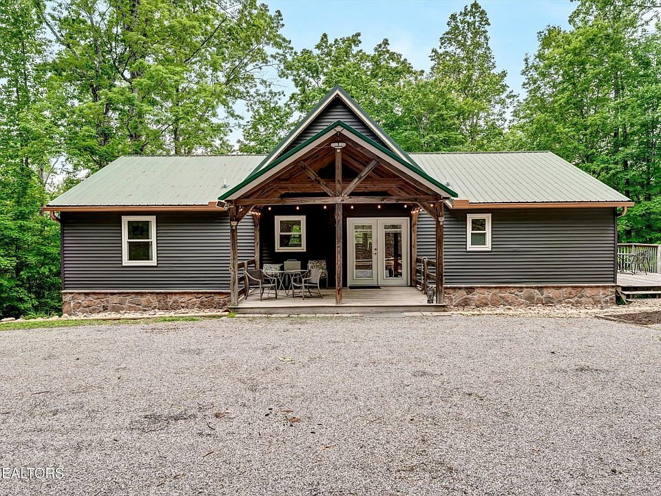 Incredibly convenient secluded cabin on 6.86 acres of wooded bliss! Only ~4 miles to the new Aspire Park in Clinton, ~4 miles to Bull Run Plant, and ~9 miles to Oak Ridge. This 2004 build has been updated with new high quality vinyl siding, new primary bathroom with walk in shower with custom glass enclosure, vanity and high end toilet. Open concept with tongue in groove ceiling, hardwood floors, and a stacked stone fireplace surround. 2 guest bedrooms share a hall bathroom. The basement is unfinished with 2 walk out french doors, a roughed in bathroom, and ready for you to finish the space. Come see this private home and enjoy the sounds of nature!