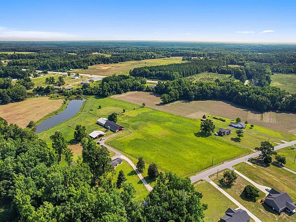 For all Equine Lovers this is it: 19 Acres with a 5,300 square foot 18 stall horse barn, wash rack, 2 tack rooms and office with a full bath. 2 acre stocked pond; 53 x 40 pole shed. Dog pin. This is truly a special property. Nice home on front of property. So, a place for your horses, dogs, fish, equipment and people. Home can be split off and sold separately from land or vice versa.