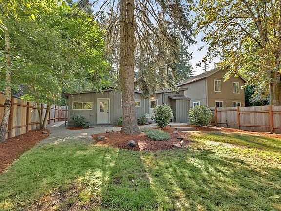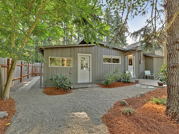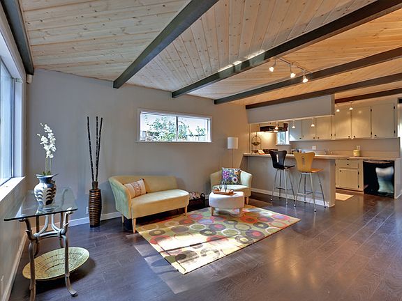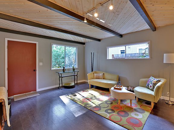 Cozy mid-century modern nestled on a large private lot. Walk to shopping, restaurants, historic city center, and soon to be new city park. Vaulted natural wood ceiling, new paint inside and out, updated bath. Backyard is fenced with fire-pit area and shed. Large front yard set back with view to trees. Lots of natural light. County says ADU is approved, buyer to verify. Great first time home or investment property